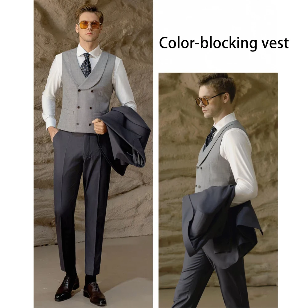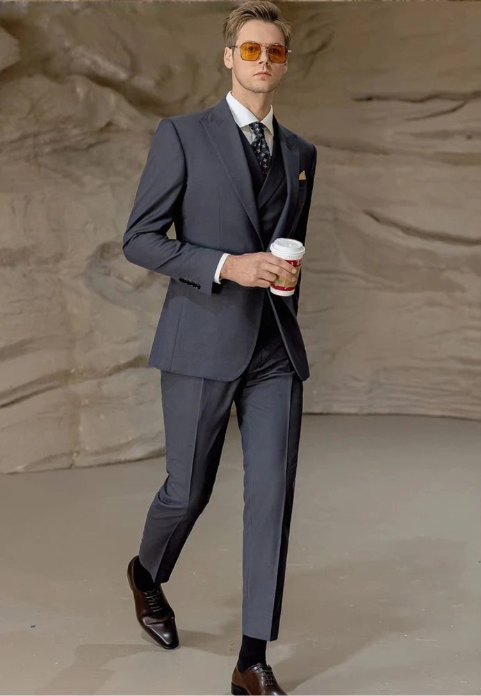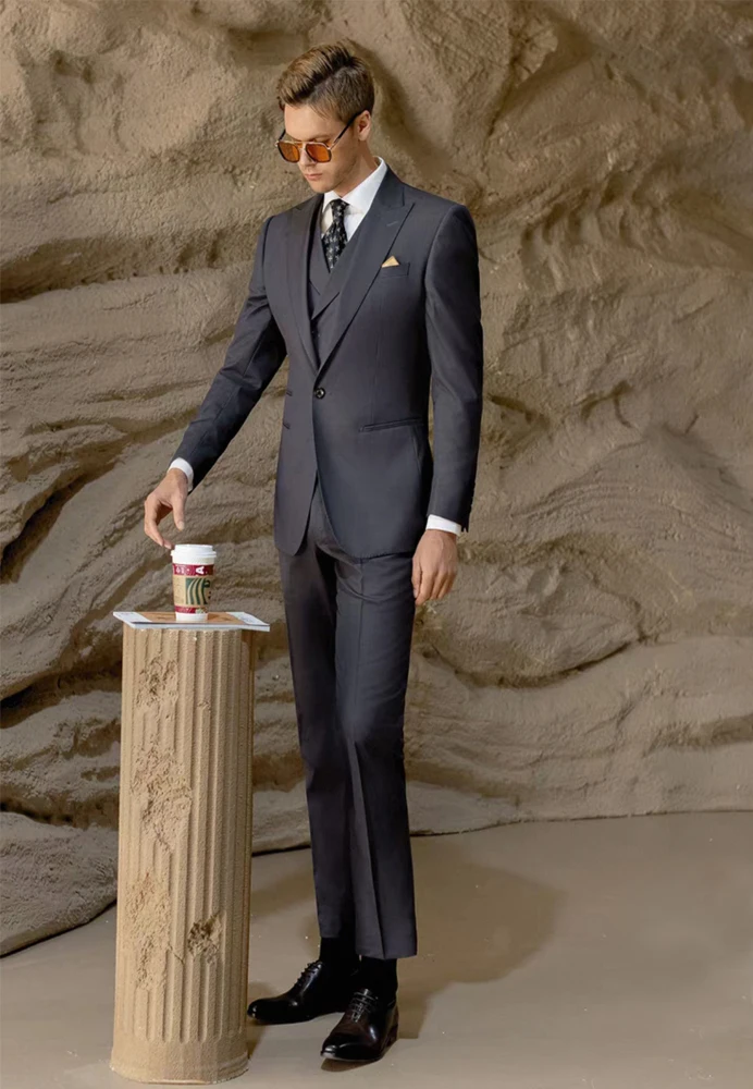 High Quality Customizable Business Office Suit Set Iron-Gray One-Button Gun-Shaped Lapel Pants Vest with Single Breasted Closure